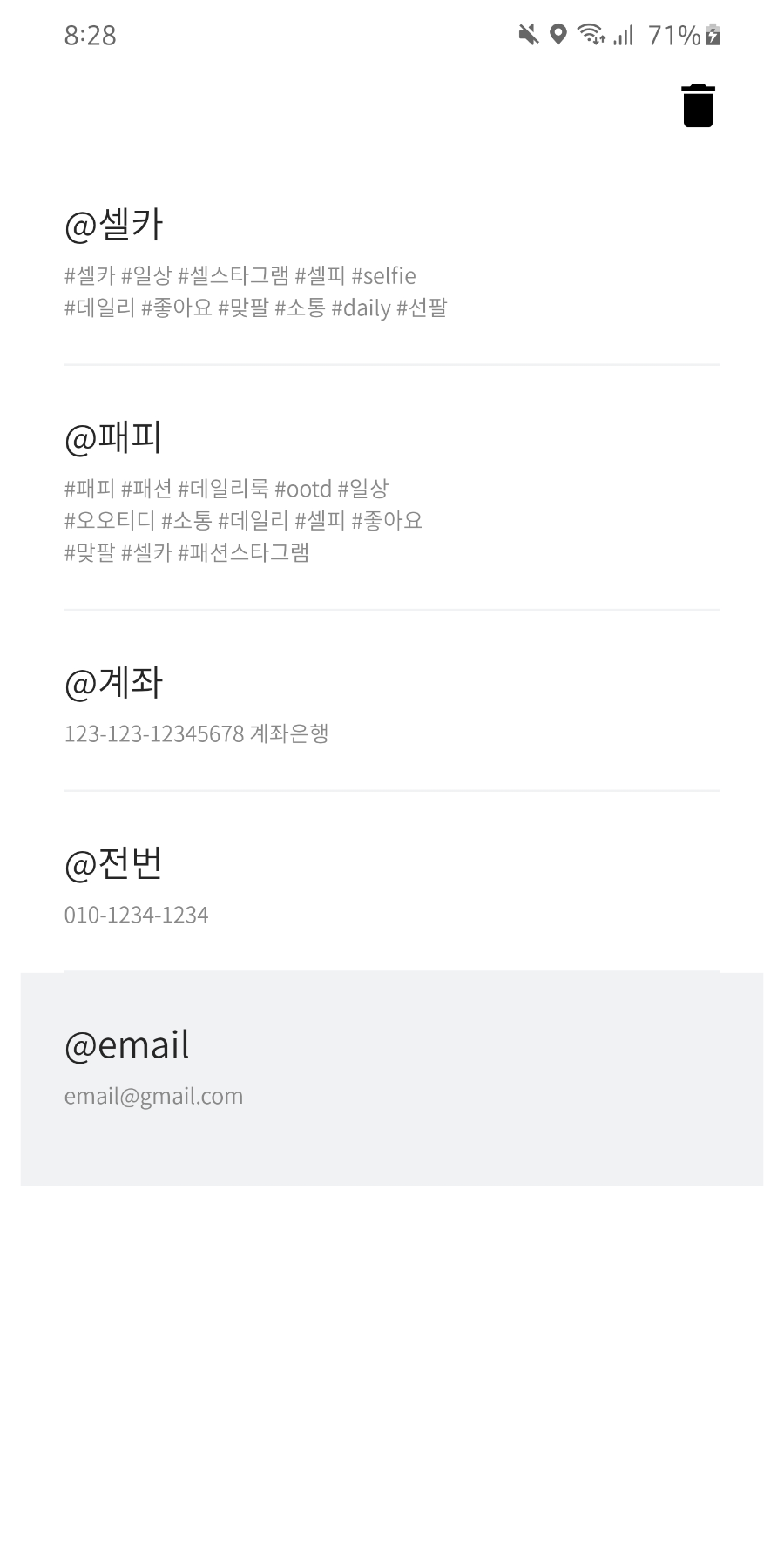 ▶ 반복적으로 사용하는 해시태그 매번 고민하지말고 편리하게 사용하세요.
